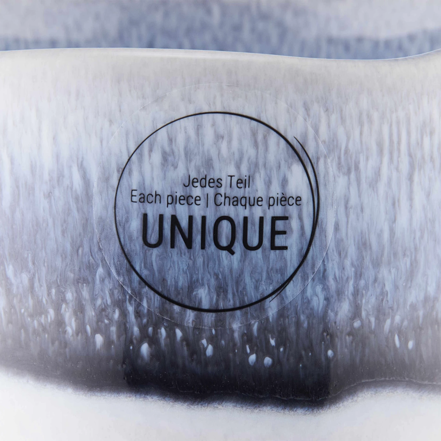 – Reaktive Glasur: Jedes Teil ein Unikat, durch Unterschiede bei der Farbgebung