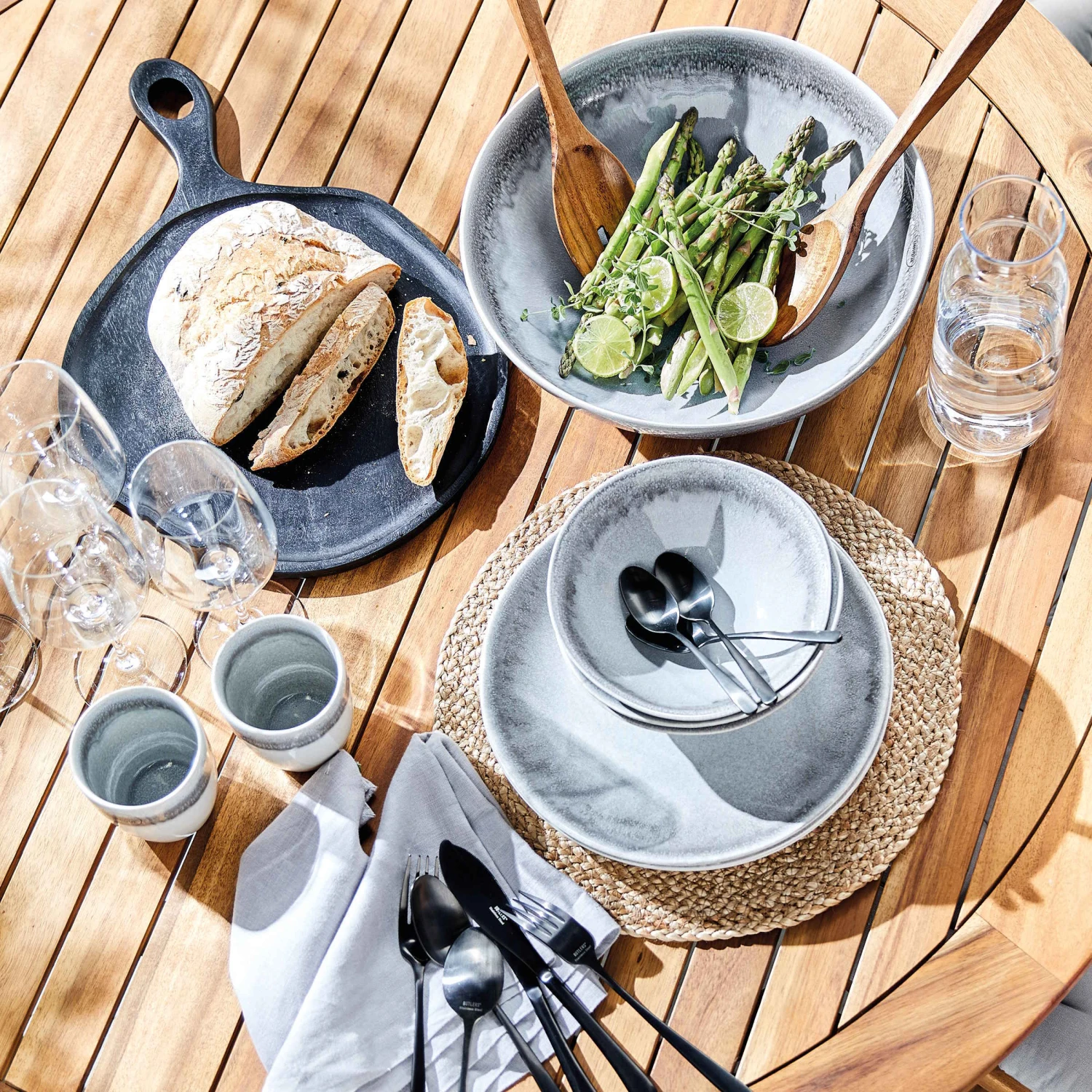 Mit unserer Geschirrserie Atlantis im angesagten Boho-Stil und organischen Formen kommt Extravaganz auf den gedeckten Tisch! Die Tasse im 4er-Set aus Steinzeug ist handgefertigt in Portugal. Durch die reaktive Glasur entstehen unregelmäßige Farbverläufe, die jedes Teil der Serie zu einem echten Unikat werden lassen. Atlantis ist in verschiedenen Farben erhältlich, die Sie miteinander kombinieren können und so für Abwechslung auf Ihrem Tisch sorgen. Durch eine Iris-ähnliche Farbzentrierung passen alle Teile perfekt zusammen. Jedes Teil der Serie ist spülmaschinen- und mikrowellengeeignet.