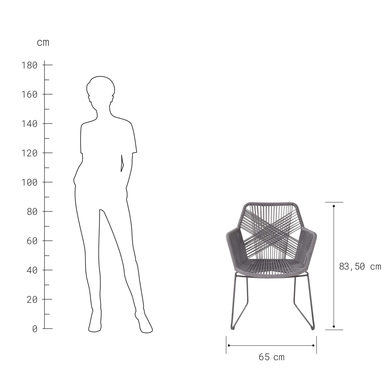 Länge 65 x Breite 62 x Höhe 83,5 cm, Sitzhöhe: 40,5 cm