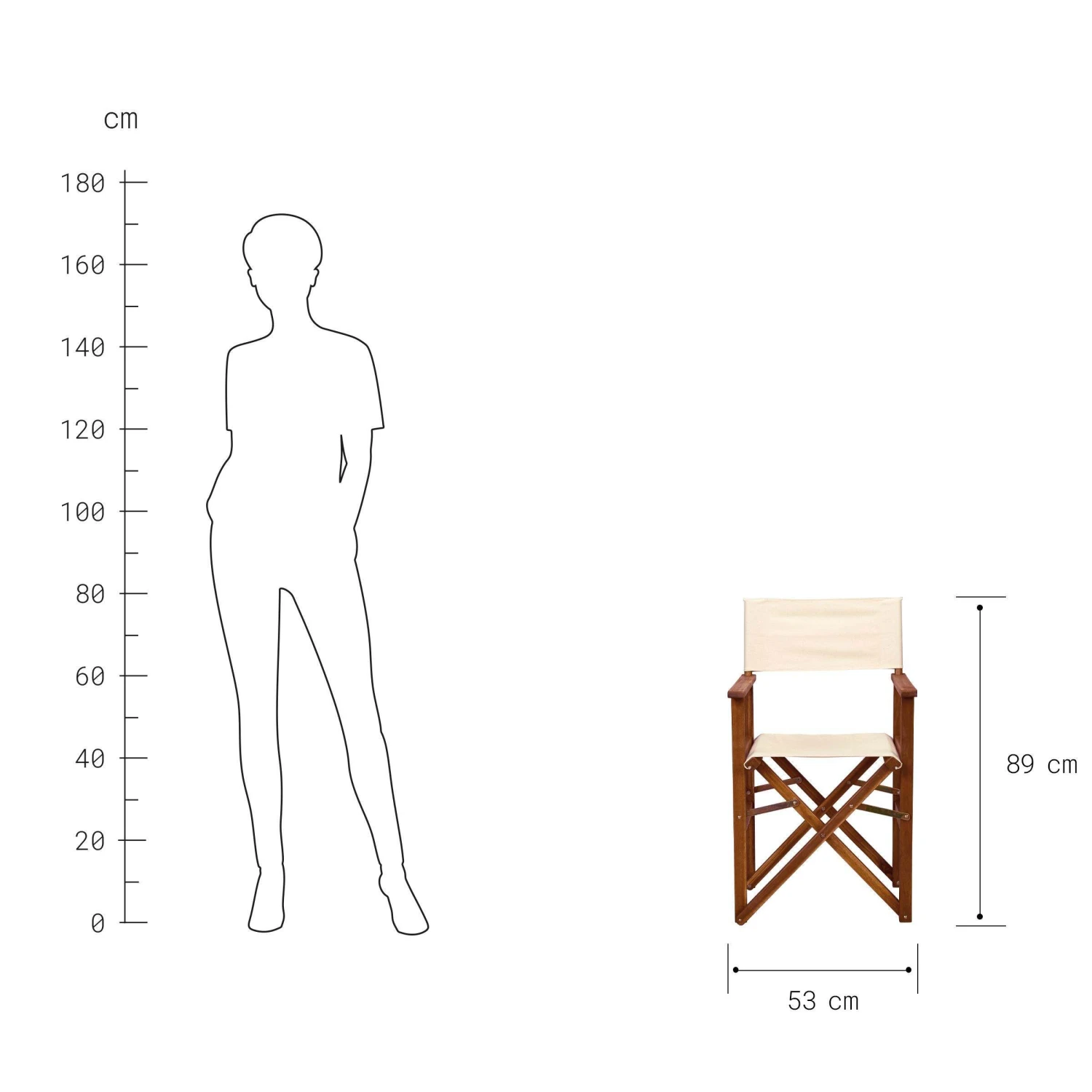 Für alle Darsteller und Crew-Mitglieder: Der klassische Hollywood Regiestuhl aus natur-farbenem Holz und creme-farbener Baumwolle ist zur Stelle, wenn er gebraucht wird, und stellt sich platzsparend zur Seite, wenn die Premierenparty losgeht.